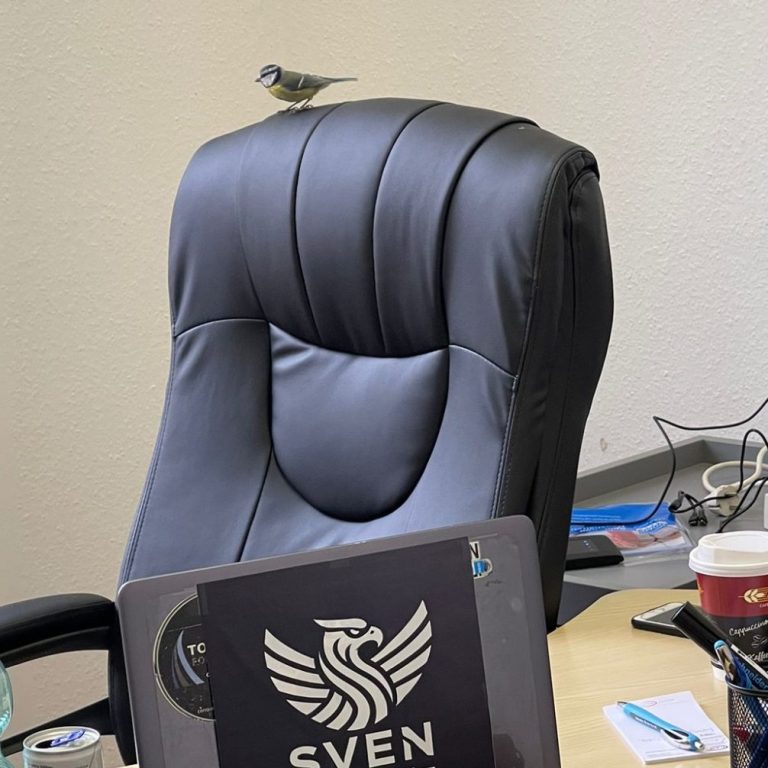 Ein Vogel hat sich in unser Büro verirrt – ganz entspannt, als wäre er zu Hause.